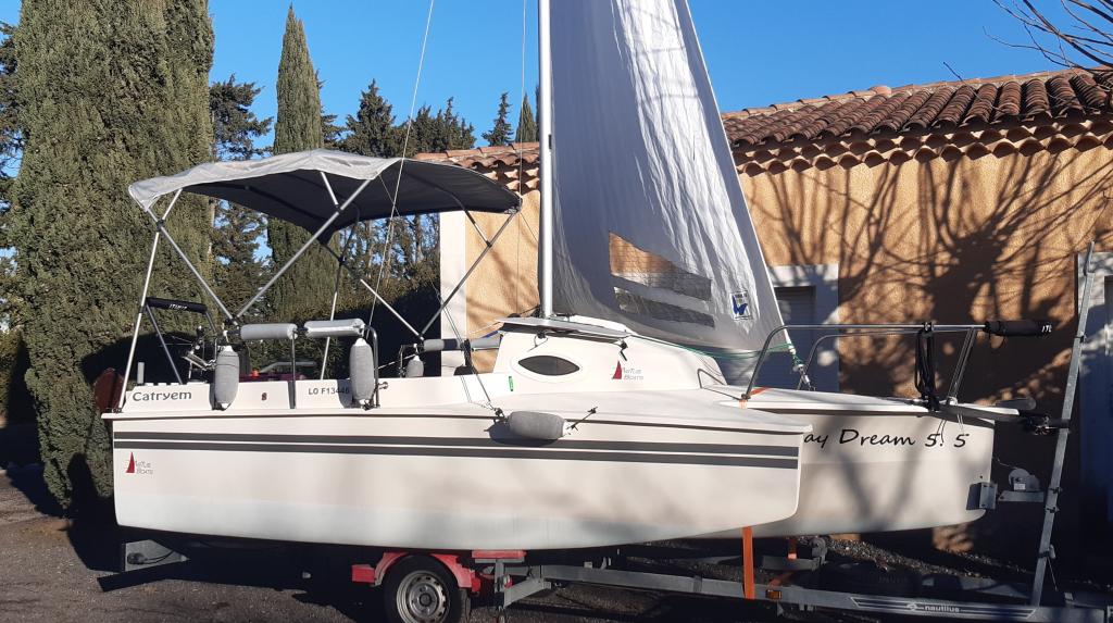 Construit par le chantier Astus Boats (Morbihan), le Trimaran Bay Dream 5.5 de 5m63 a été lancé en 2013.