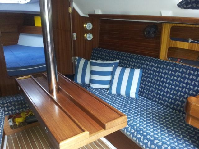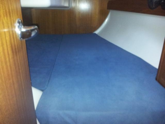 Je l'ai équipé en bateau à vivre au soleil: panneaux solaires, bimini, cagnards, frigo plus isolé, matelas haute densité, équipets souples "maison", etc ...